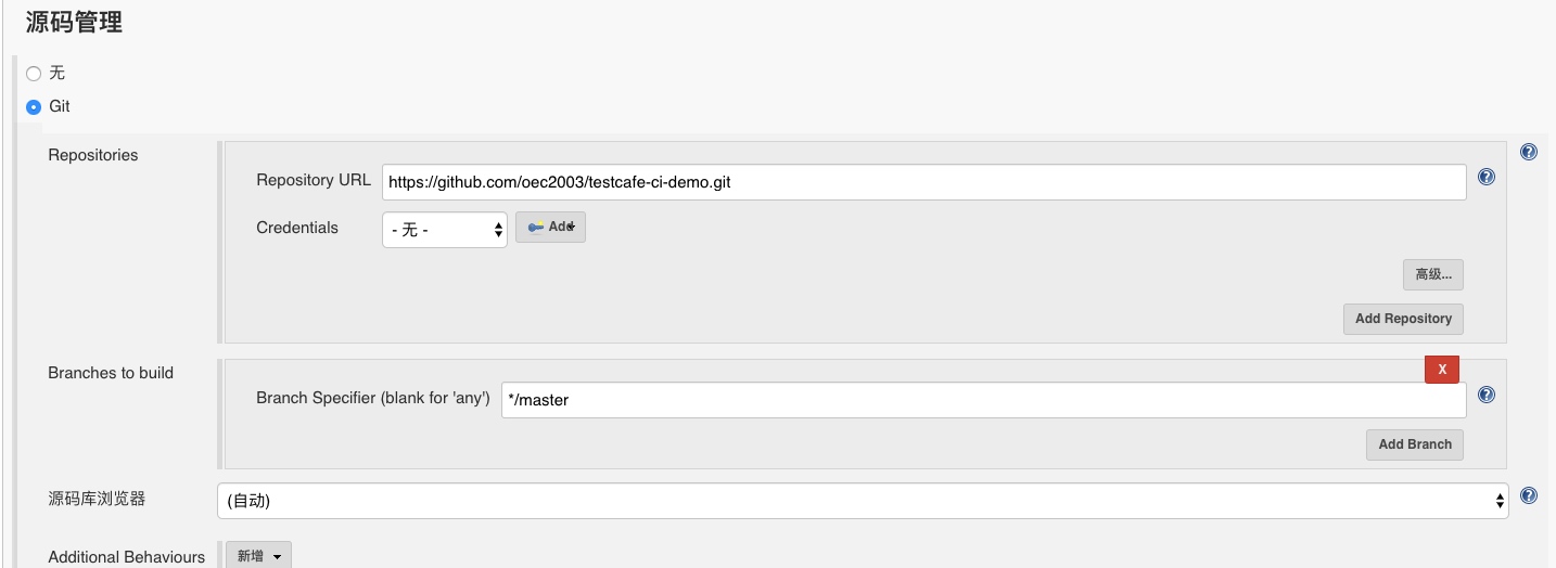 Git中配置的测试的代码地址https://github.com/oec2003/testcafe-ci-demo.git是我fork的官网的一个例子,原项目地址为:https://github.com/DevExpress-Examples/testcafe-ci-demo.git
