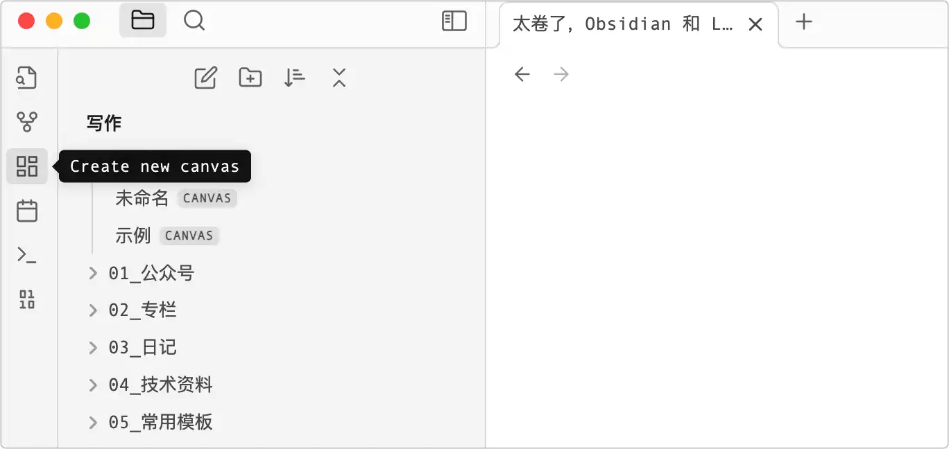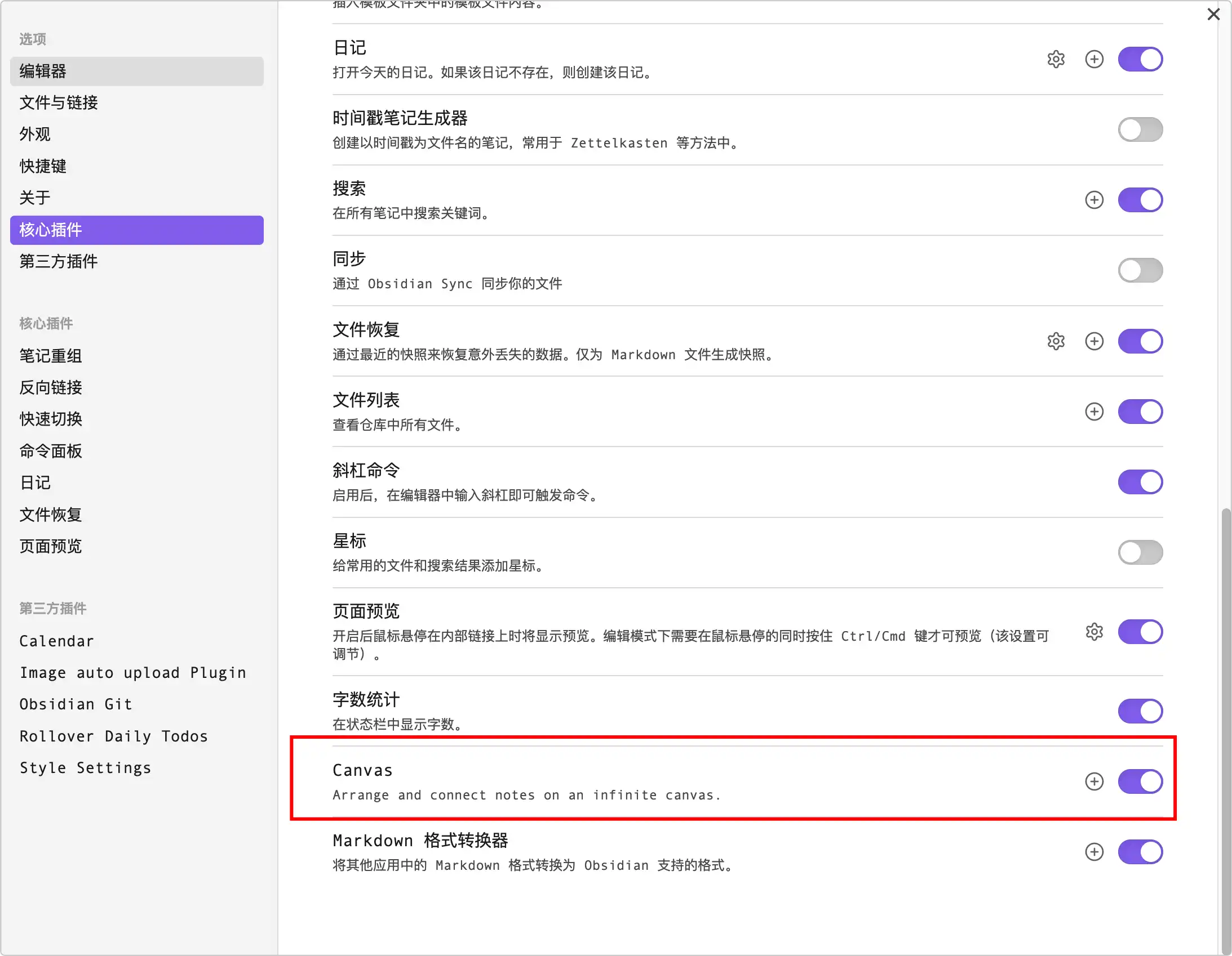 Obsidian 从 v1.1.8 开始支持白板功能,目前最新是 v1.1.9 ,白板功能作为内置核心组件提供,更新后默认就是开启的。