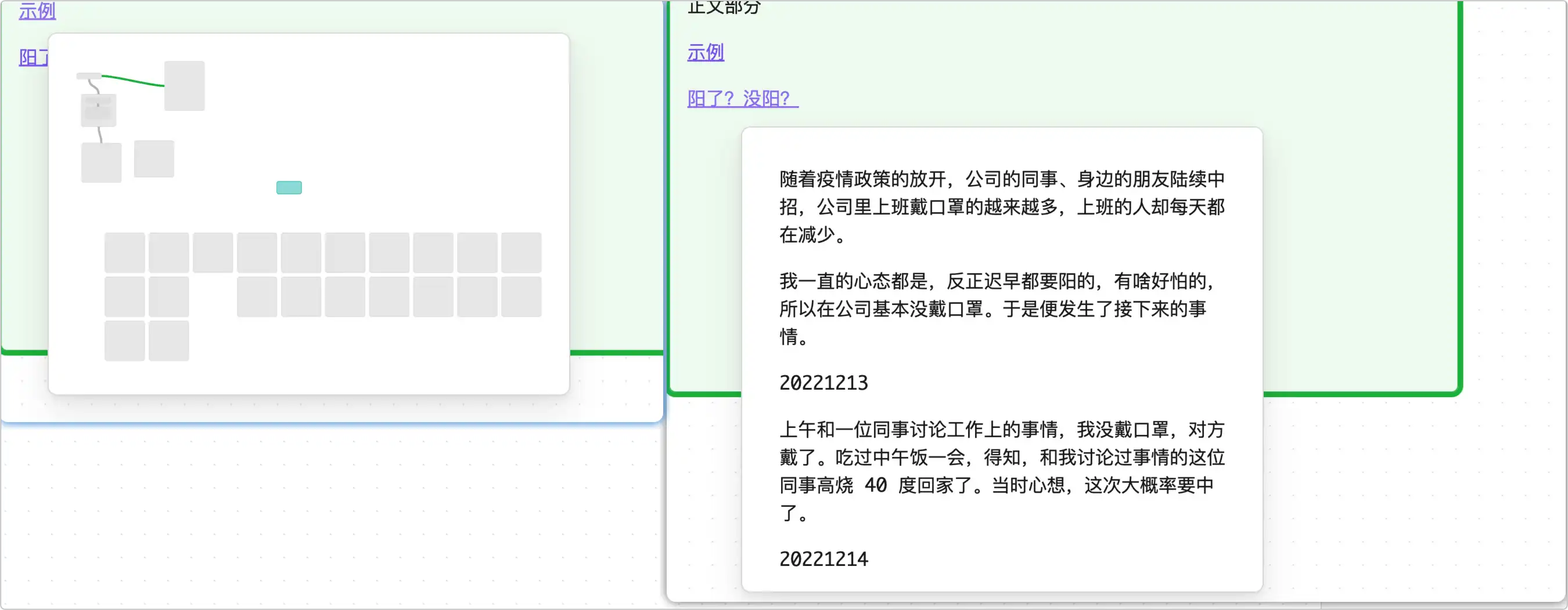 5、在卡片中输入双中括号可以进行双向链接,可链接到其他的笔记和白板,创建链接后,鼠标移动上去可以看到对应笔记的内容或白板的缩略图:
