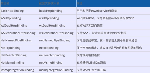 绑定就是一个从通用基础类型派生出来的运行时类型。绑定中描述了传输协议,消息编码格式和其他的一些用于通信的通信协议。