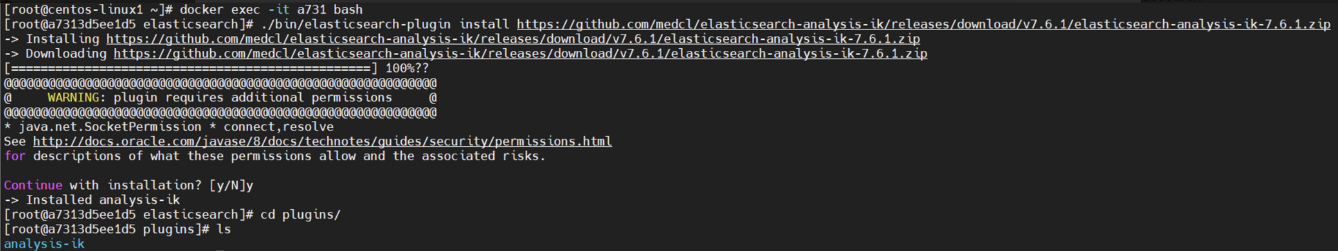 1 | ./bin/elasticsearch-plugin install [https://github.com/medcl/elasticsearch-analysis-ik/releases/download/v7.6.1/elasticsearch-analysis-ik-7.6.1.zip](https://github.com/medcl/elasticsearch-analysis-ik/releases/download/v6.5.4/elasticsearch-analysis-ik-6.5.4.zip) |