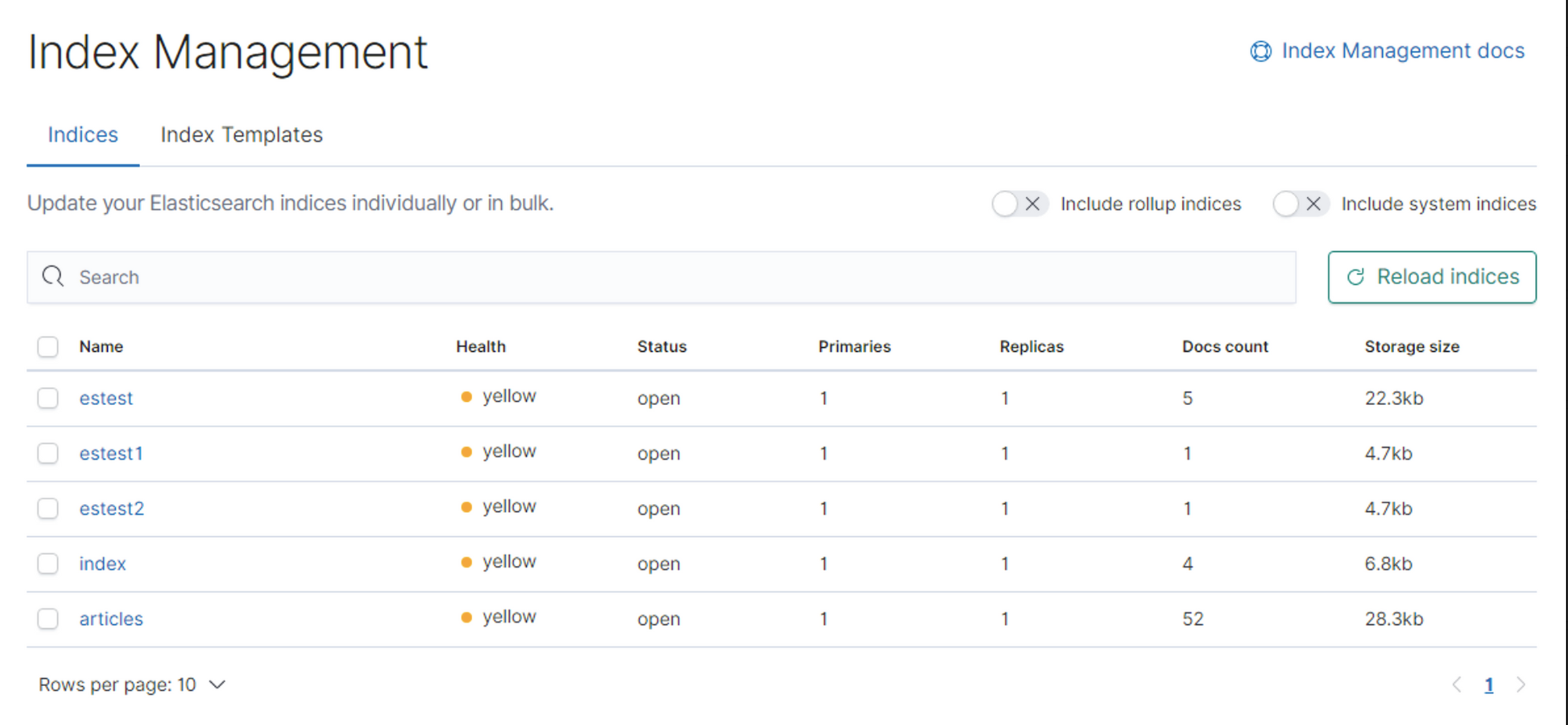 在改功能中可以维护所有的 idnex ,也可以看看我们创建的 index 有没有在里面显示: