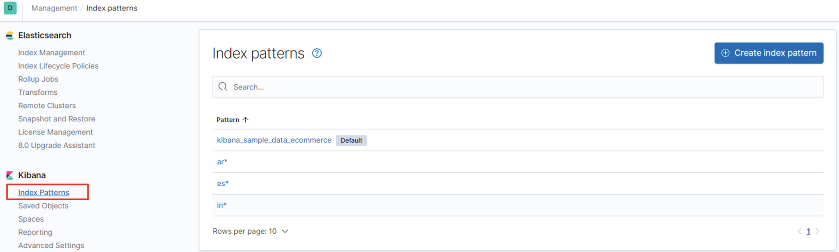 2、在 Index Patterns 中进行 index pattern 的添加,名字可以进行模糊匹配