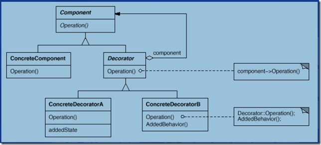 public class App { static void Main() { Tank tank = new T50(); //拥有红外一种功能 ConcreteDecoratorA da = new ConcreteDecoratorA(tank); //拥有红外和两栖两种功能 ConcreteDecoratorB db = new ConcreteDecoratorB(da); //拥有红外、两栖和定位三种功能 ConcreteDecoratorC dc = new ConcreteDecoratorC(db);
