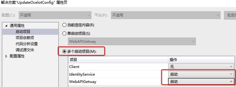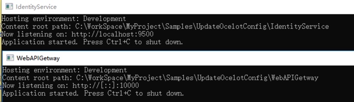| public void ConfigureServices(IServiceCollection services) { Action<IdentityServerAuthenticationOptions> options = o => { //IdentityService认证服务的地址 o.Authority = "http://localhost:9500"; //IdentityService项目中Config类中定义的ApiName o.ApiName = "s2api"; o.RequireHttpsMetadata = false; o.SupportedTokens = SupportedTokens.Both; //IdentityService项目中Config类中定义的Secret o.ApiSecret = "secret"; }; services.AddOcelot() .AddAdministration("/admin", options); } public void Configure(IApplicationBuilder app, IHostingEnvironment env) { if (env.IsDevelopment()) { app.UseDeveloperExceptionPage(); } app.UseOcelot().Wait(); }