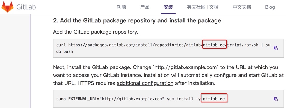 2、上图中红框部分是一个指定的是gitlab-ee的版本,gitlab有两个版本:gitlab-ce和gitlab-ee,分别是社区版和企业版,企业版是收费的,社区版是开源的,通常我们安装社区版就可以,所以此处需要将gitlab-ee修改为gitlab-ce。