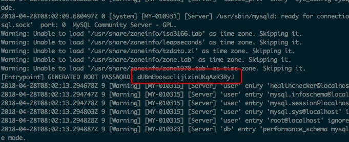 首先执行下面命令查看容器日志,找到MySql的root账户的密码