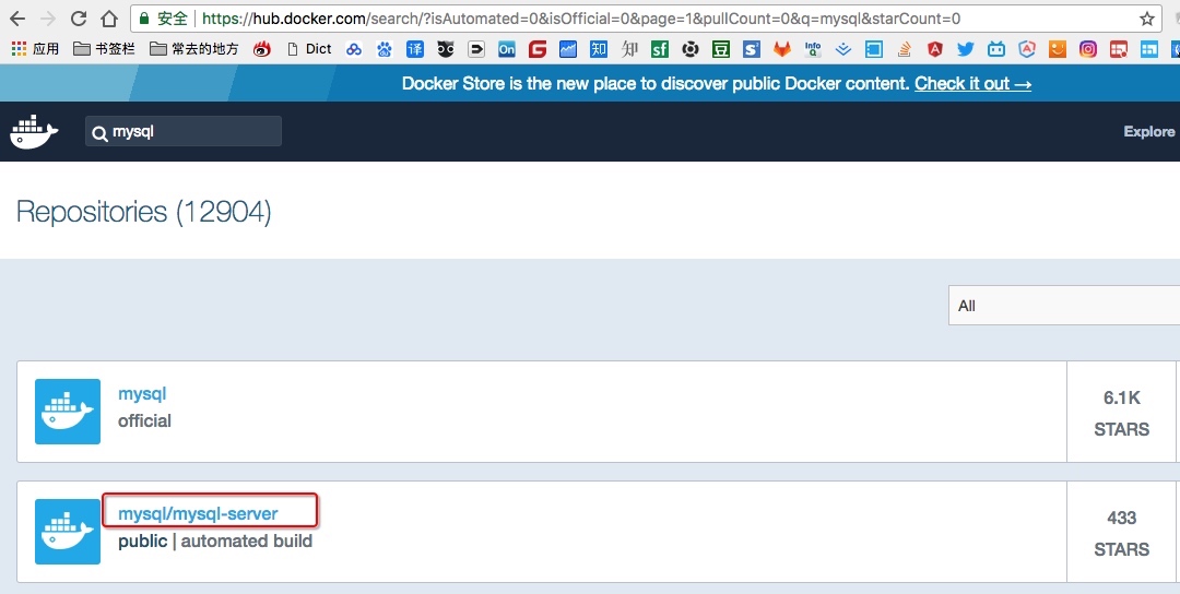 在https://hub.docker.com,搜索mysql,结果如下: