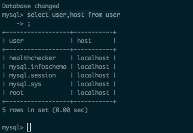 1 | select user,host from user |