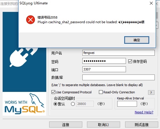 此刻我们使用Sqlyog来连接该容器了测试下,发现会报如下错误