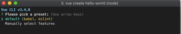 Vue 创建应用时分为默认模式和手动模式,这里我们选择默认模式