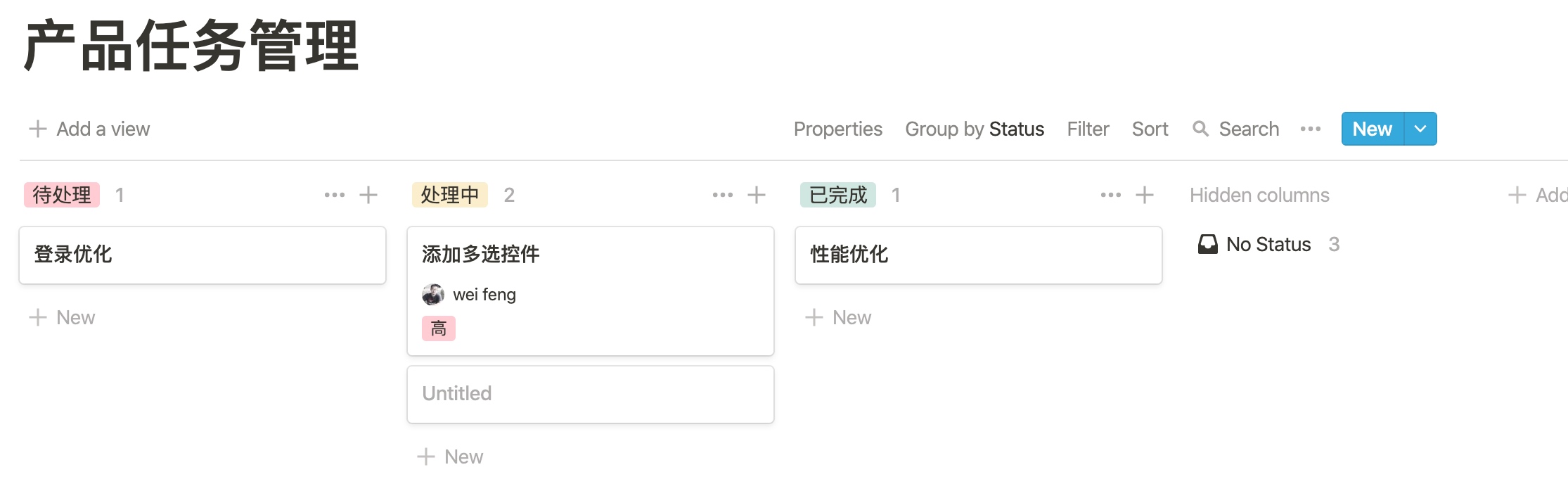 敏捷开发中的看板管理,可以使用 Board 的视图模式来构建, Notion 可以支持团队协作,这样进行简单的配置,一个任务管理系统就做出来了。