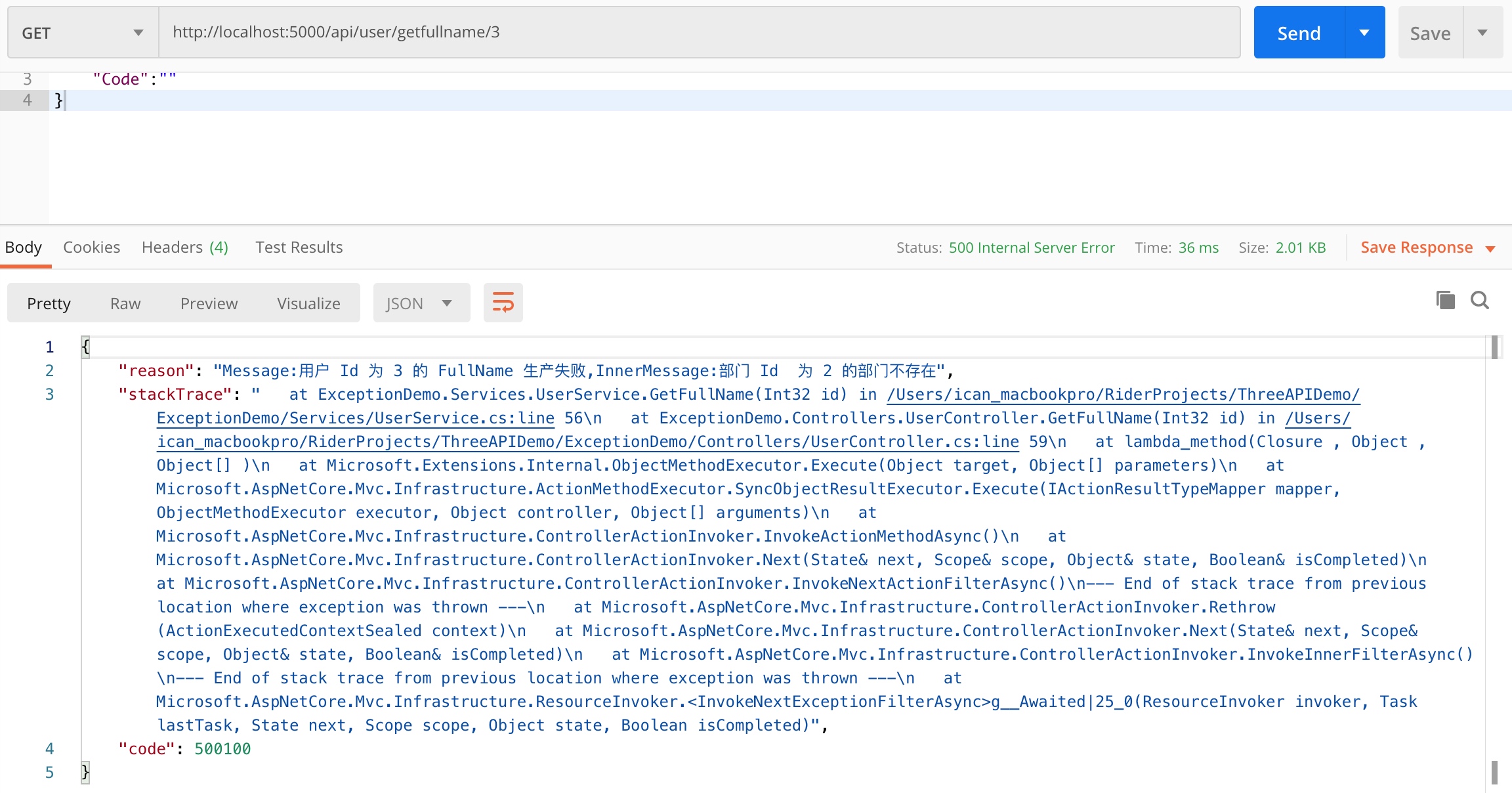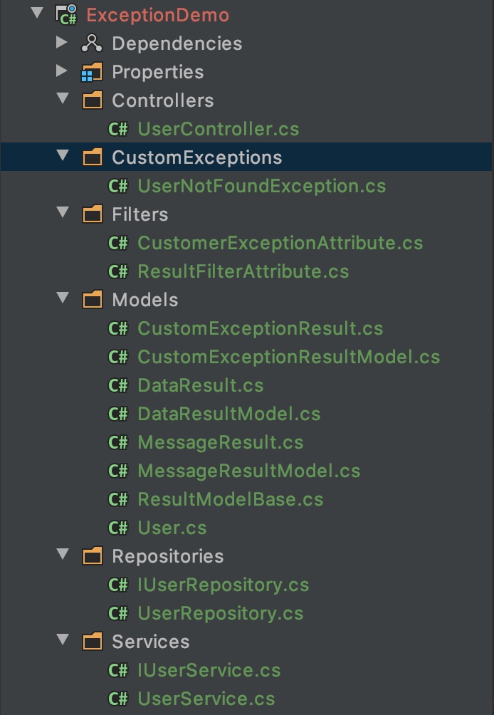 int code = (int) status; //处理各种异常 if (context.Exception is UserNotFoundException) { code = 500001; } context.Result = new CustomExceptionResult(context.Exception,status ,code); context.ExceptionHandled = true; } }