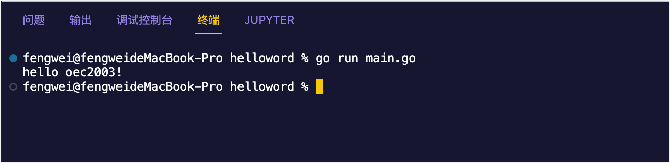 2、使用 VS Code 打开 helloworld 目录,并在目录中创建 main.go 文件,内容如下: