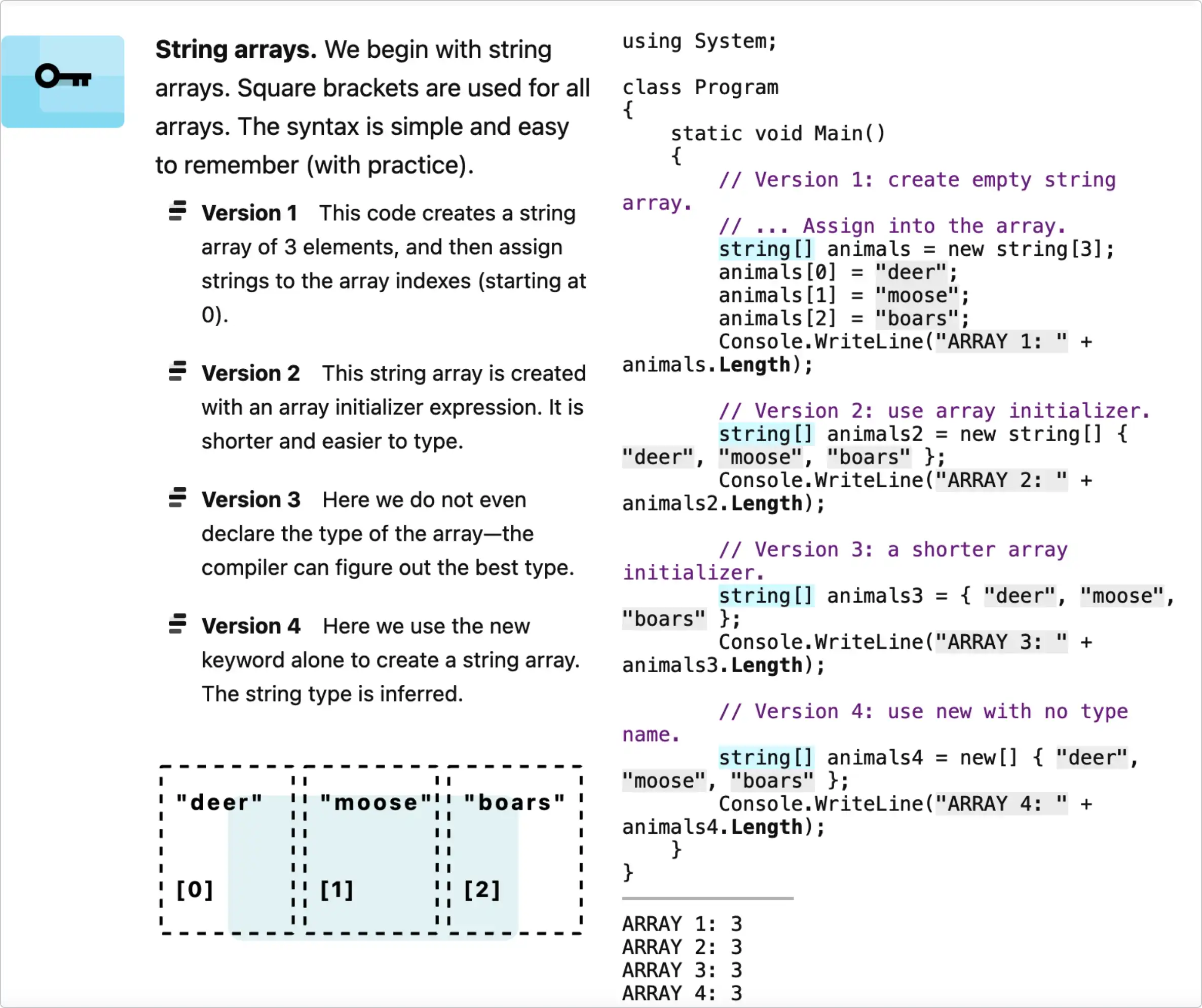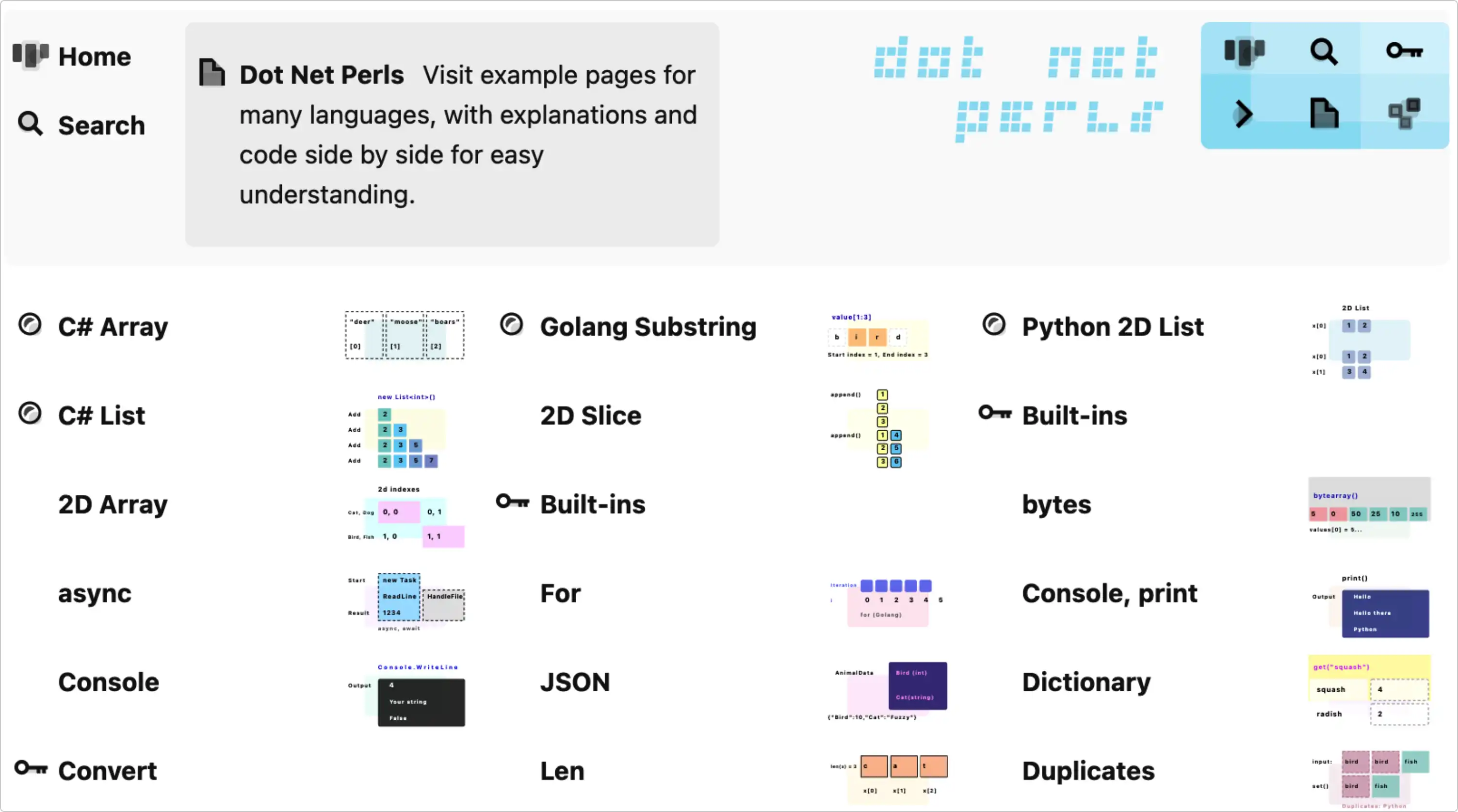 在网站中可以搜索各种语言的关键语法的代码片段,比如搜索 C# Array :