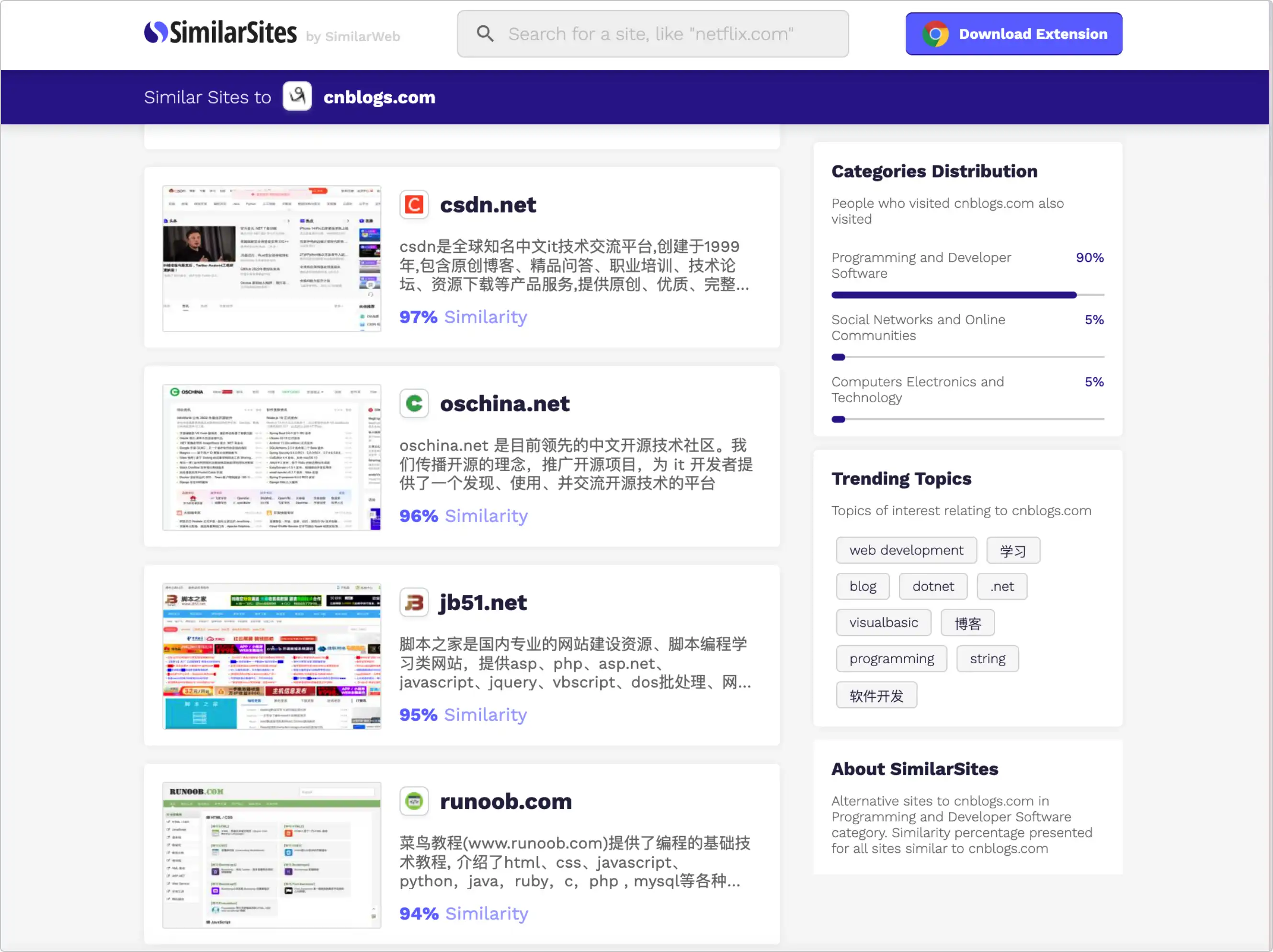 比如在搜索框中输入:cnblogs.com ,结果如下: