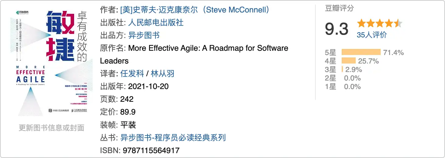 2021 年底就在团队内开始尝试实践敏捷,使用的是 Scrum ,在《敏捷开发:从理论到团队落地》一文中有详细介绍。2022 年读的这本书,有很大的补充用,从实践出发讲述如何较好的实现敏捷,如果你的团队正在使用或是将要使用敏捷,那么这本书可以作为一个很好的行动指南。