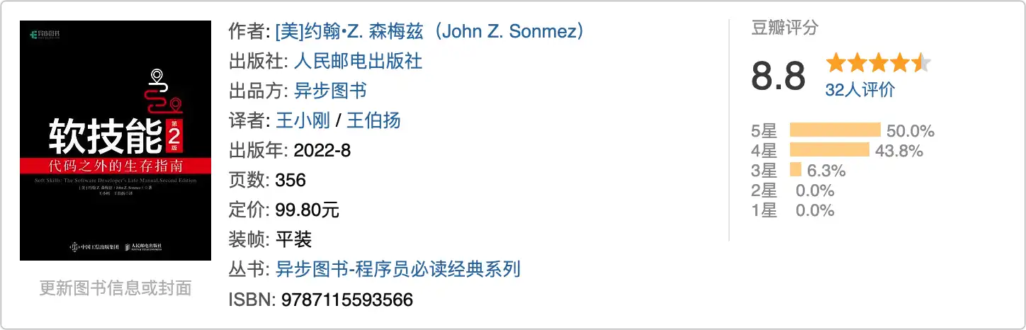 时隔六年,作者对这本书进行升级,在 2022 年发布了第二版,书的译者依然有王小刚,他曾经承诺只要作者还有软技能相关书籍出版,仍然会义无反顾担任翻译工作,现在看来,没有食言。