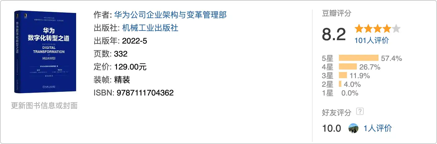 这本书是华为对过去自己做数字化转型的经验总结,我们可以结合自己企业的业务、流程等,从中获取宝贵经验,少走弯路。