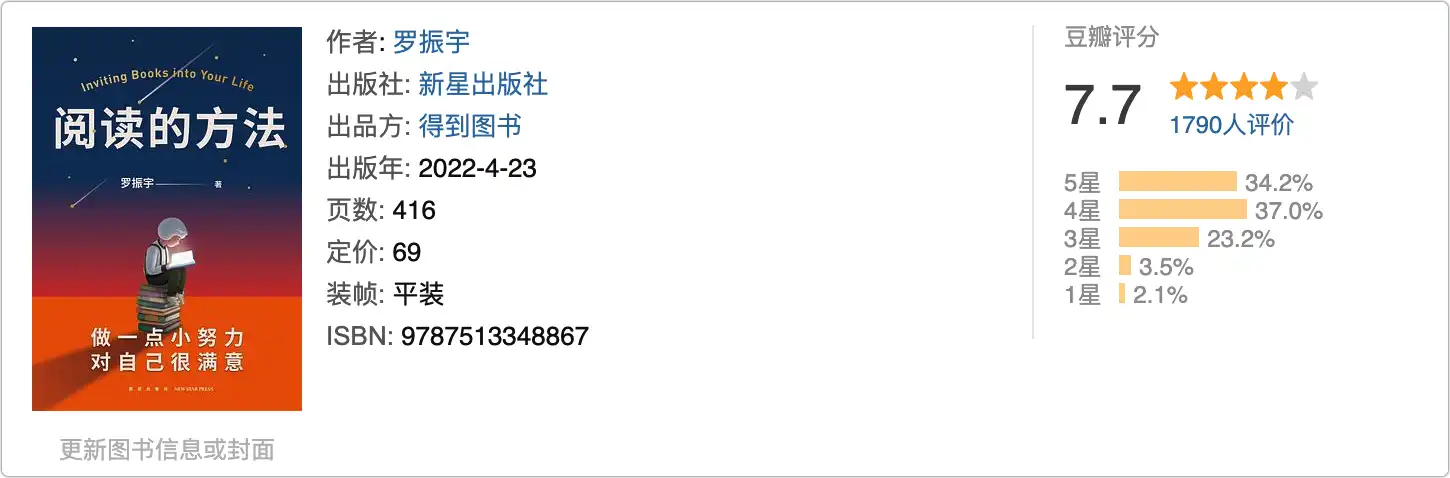 罗胖的这本书,虽然书名叫阅读的方法,但书中却没有具体的方法,我觉得叫阅读的意义可能更合适。