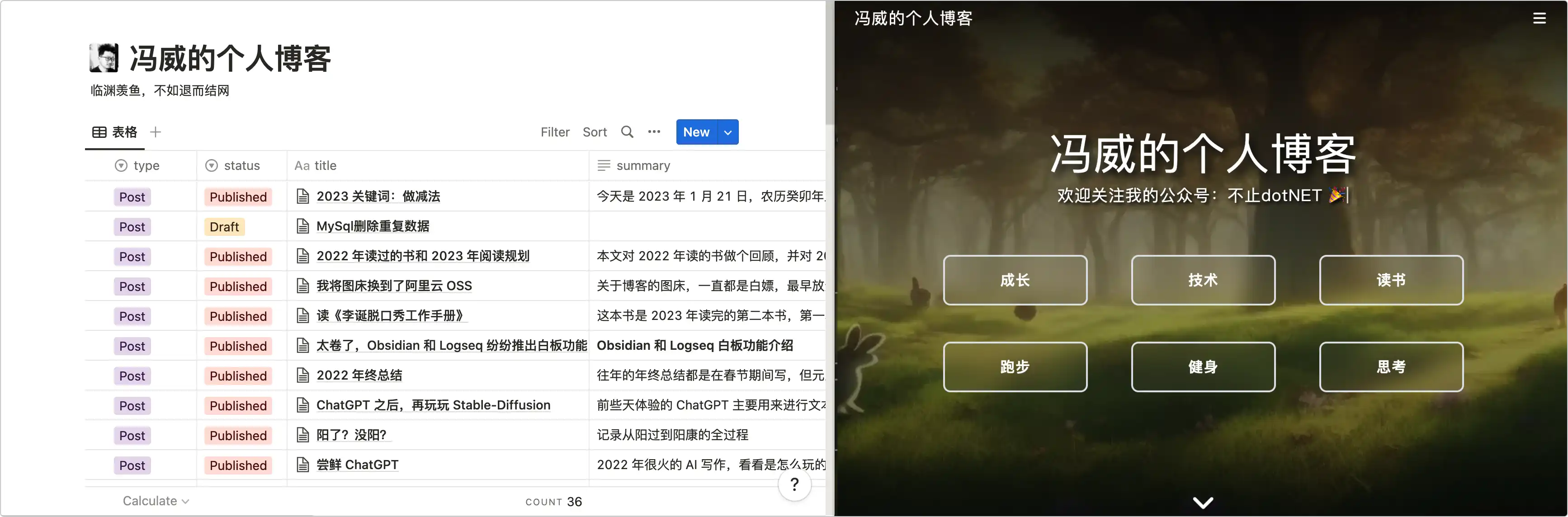 如果您在使用 Notion ,又正好想要玩玩博客,我觉得可以试下 NotionNext 。不过我理想中的博客还是能随意写博客文章,又能方便地将现有的博客文章组织成专栏。