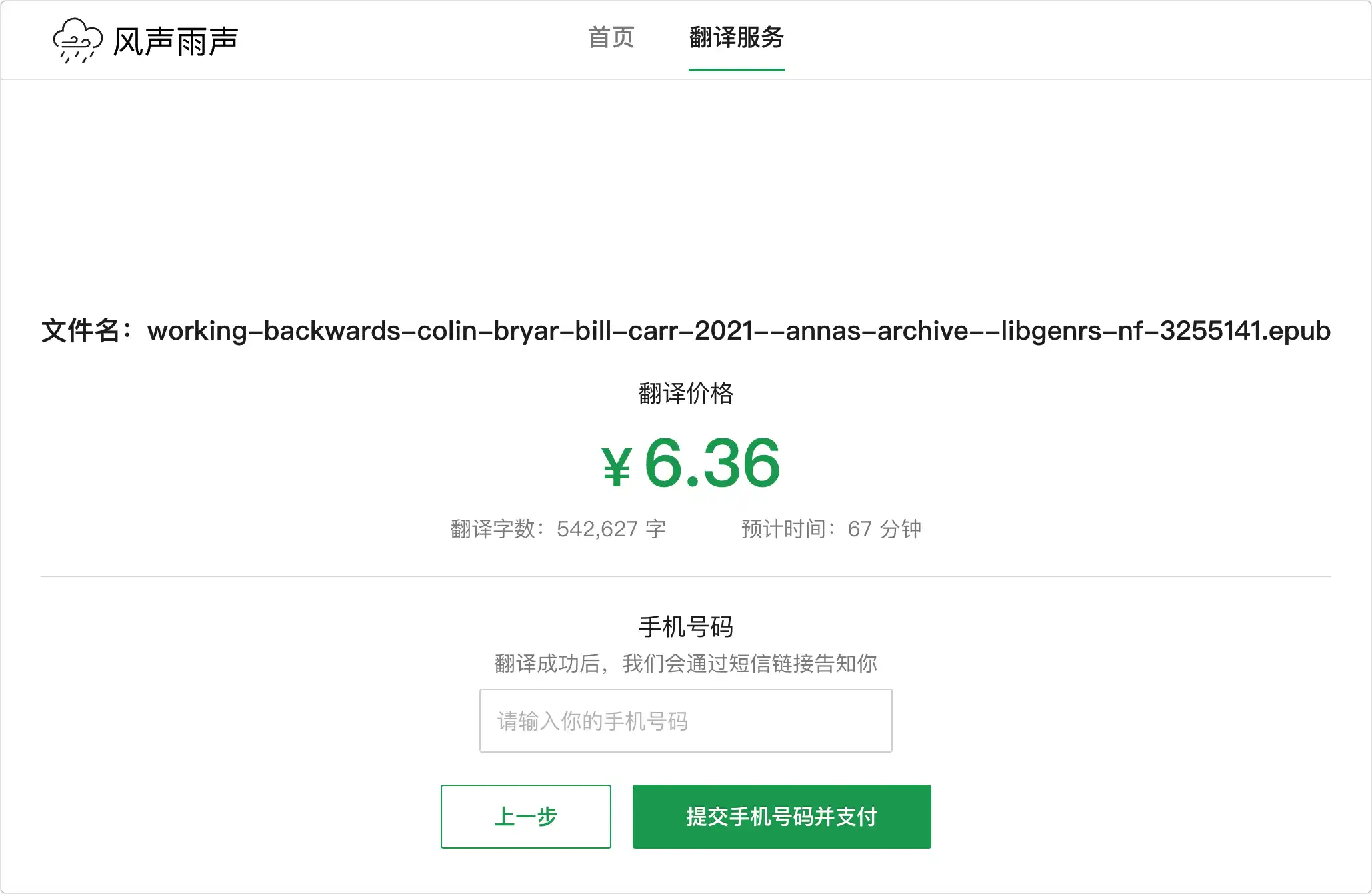 我尝试了下 Working Backwards 这本书,上传完成后根据字数有一个价格的估算,这本书的估算为 6.36 元,不算太贵。