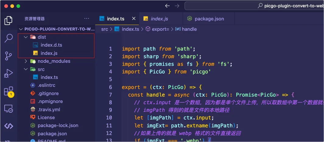 4、本插件的目的需要将上传的图片转为 webp 格式,需要 sharp 库,安装命令如下:
