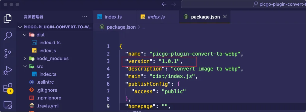 1、如果插件的代码有修改,可以在 package.json 文件中升级一个版本,重新打包: