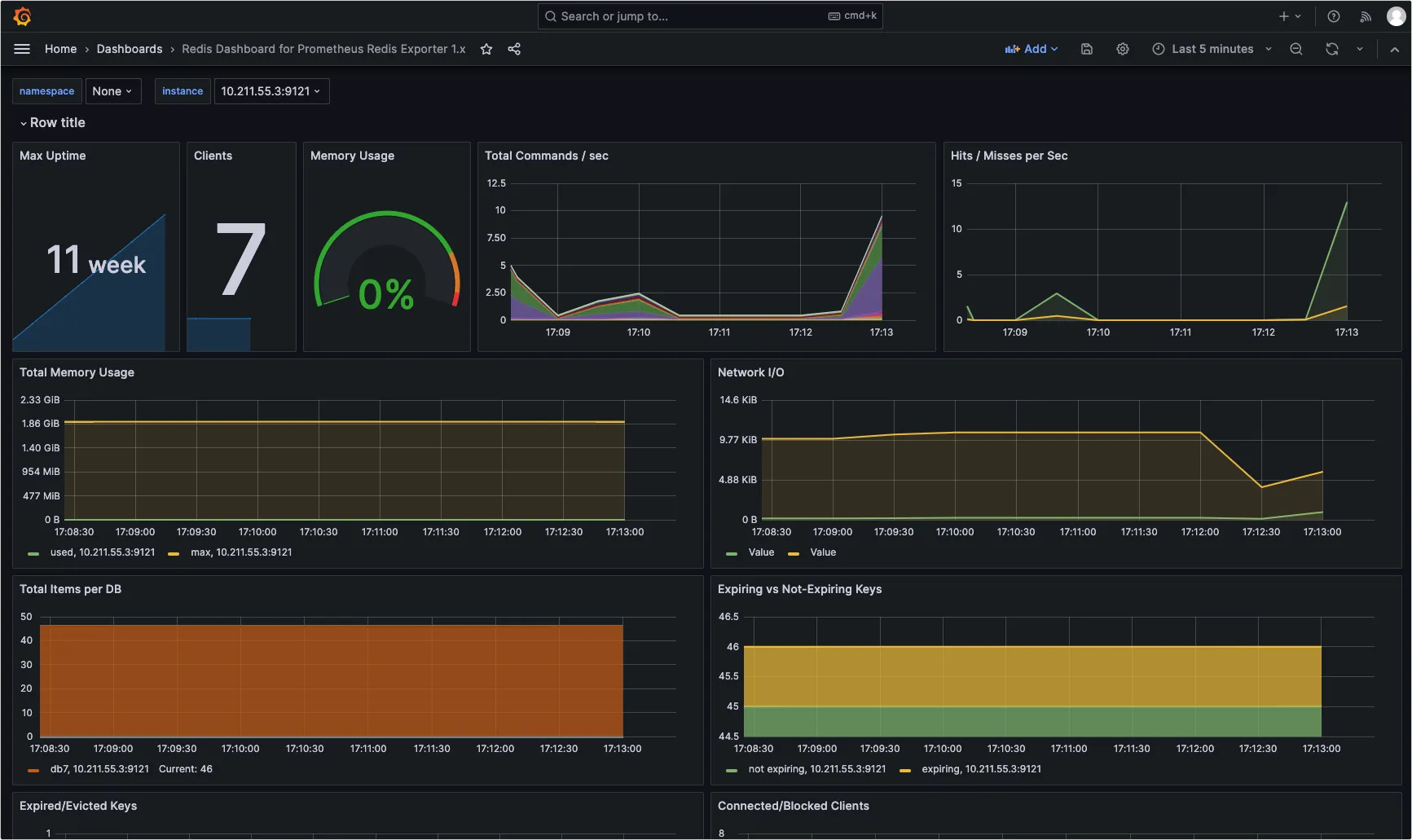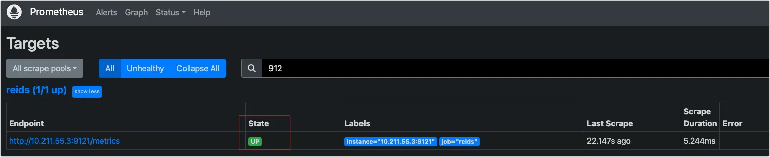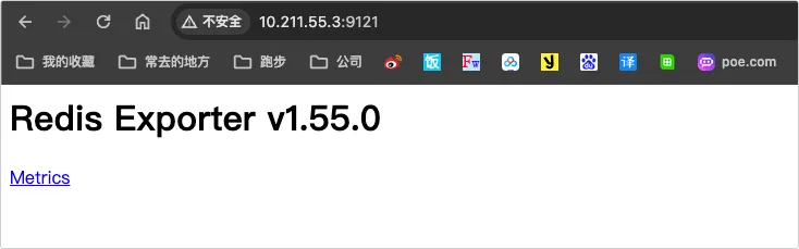 - 上面命令中 –network s2v9_test_s2_net 为 redis 容器所在的网络,因为我的 exporter 容器和 redis 容器在一台服务器,设置为同一网络后,–redis.addr 就可以使用容器的内部 IP 和端口。
