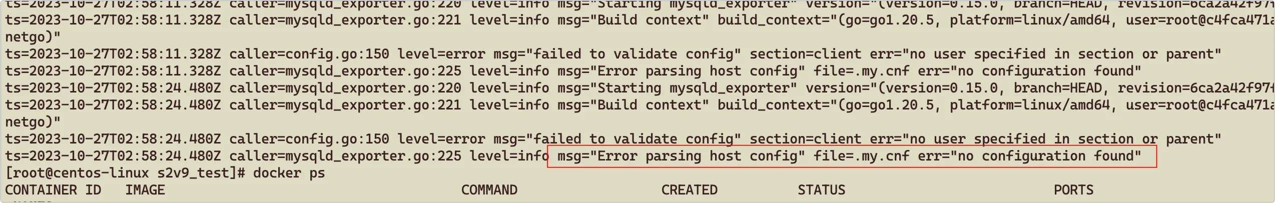 如果没有 .my.cnf 文件的映射,会出现下面错误: