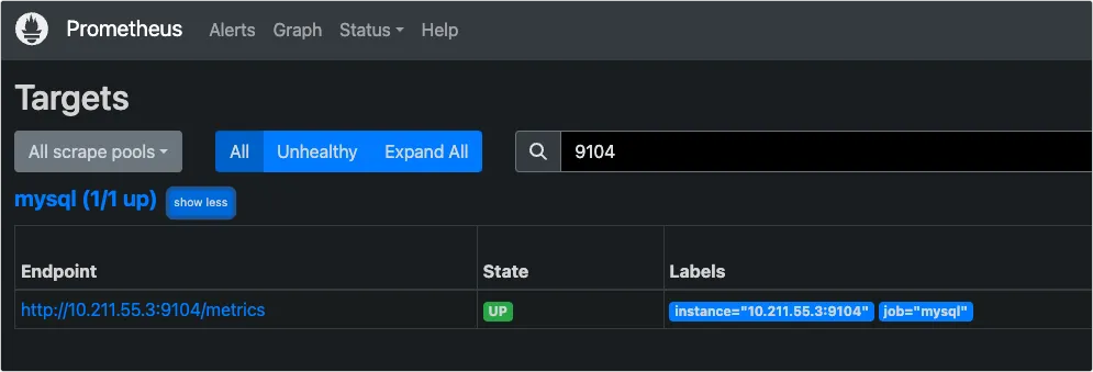 1 | CREATE USER 'exporter'@'%' IDENTIFIED BY 'Aa123456'; |