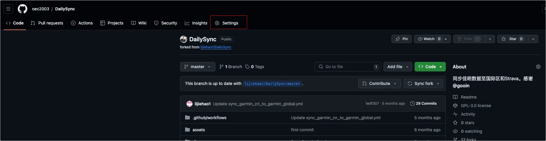 注册登录后,访问:https://github.com/lijiehao1/DailySync ,这个开源项目地址,将这个项目 Fork 到自己的账号下。