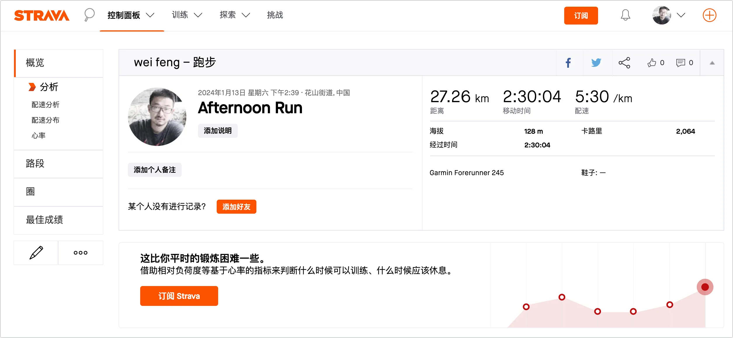 10、上面已经在 Strava 中进行了和佳明国际区的连接,这时进入到 Strava 中看看,可以看到数据已经正常同步了: