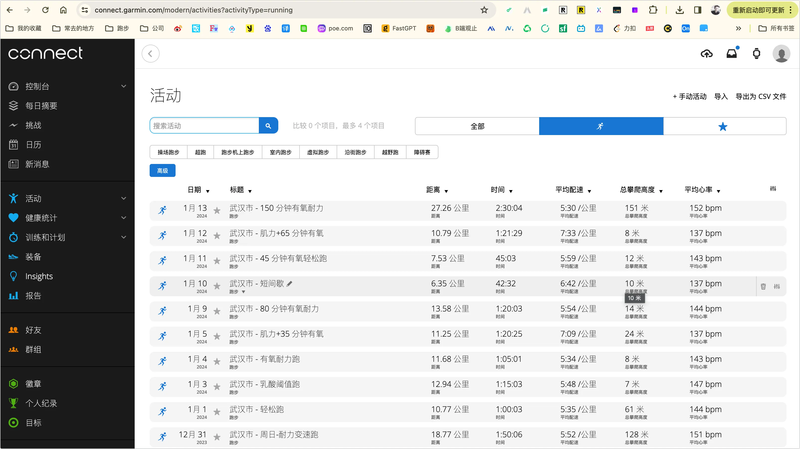 8、这时登录进入佳明的国际区,查看所有活动,发现已经同步一条数据进来了: