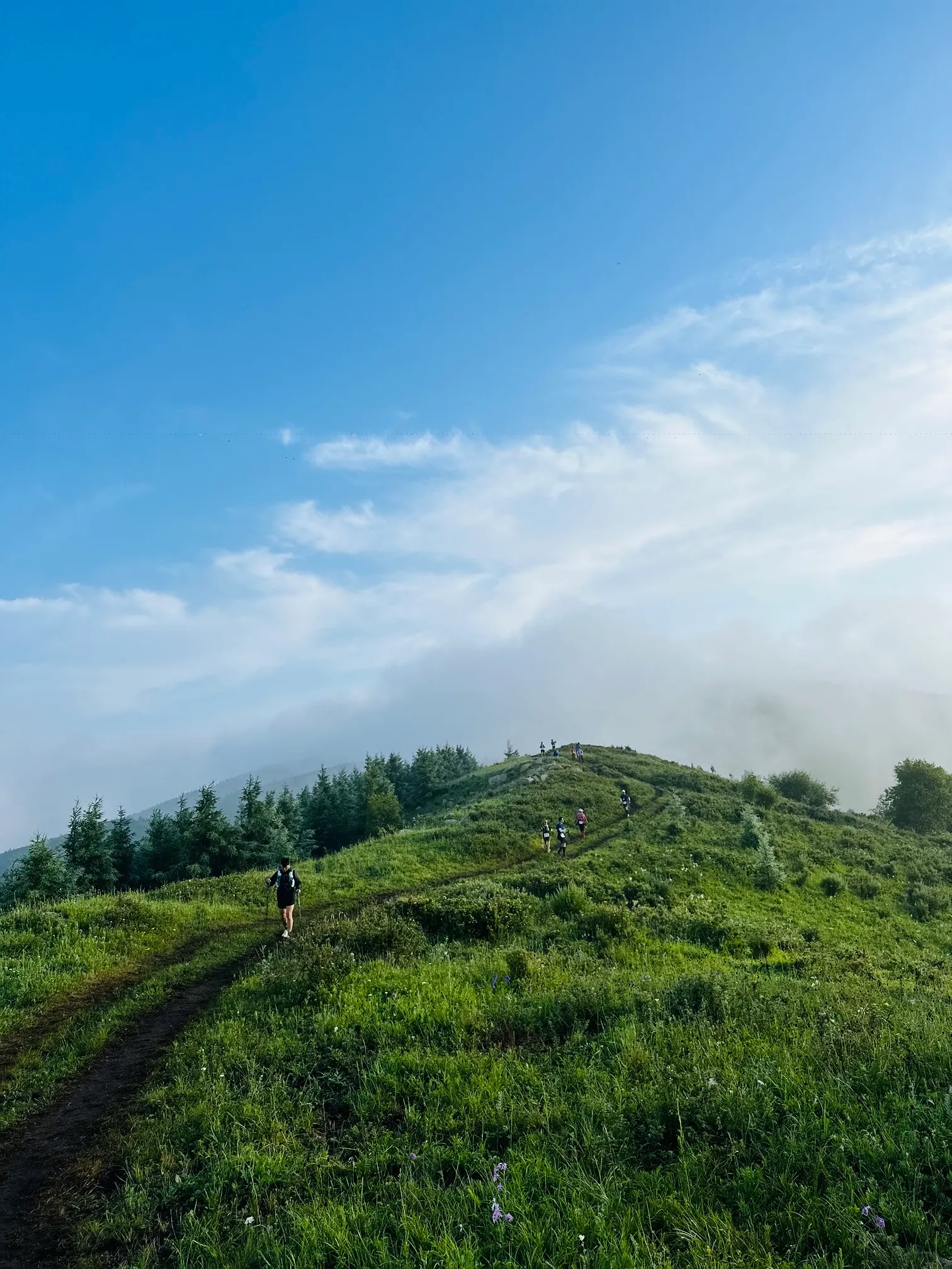 4 点多,天空渐渐泛白,仍然没有一丝困意,收起头灯,继续前行。