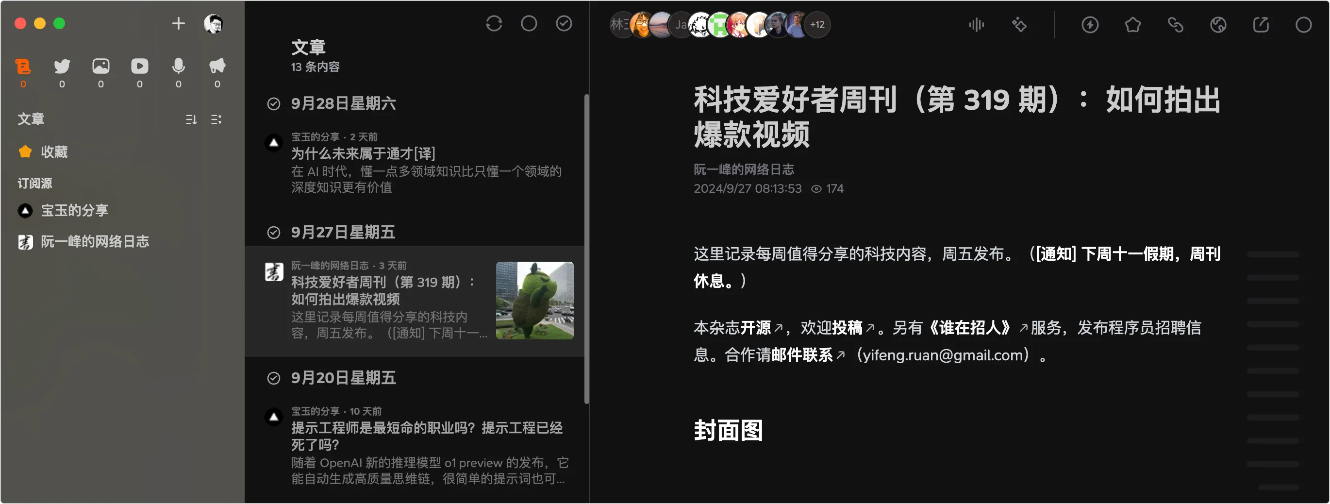 信息源多了,我们就需要在各类应用之间进行来回切换,还容易被各个应用的推荐算法给控制了,所以我更习惯在一个地方去看所有内容,这就需要 RSS,而 Follow 是 RSS 的升级版,似乎可以订阅一切。