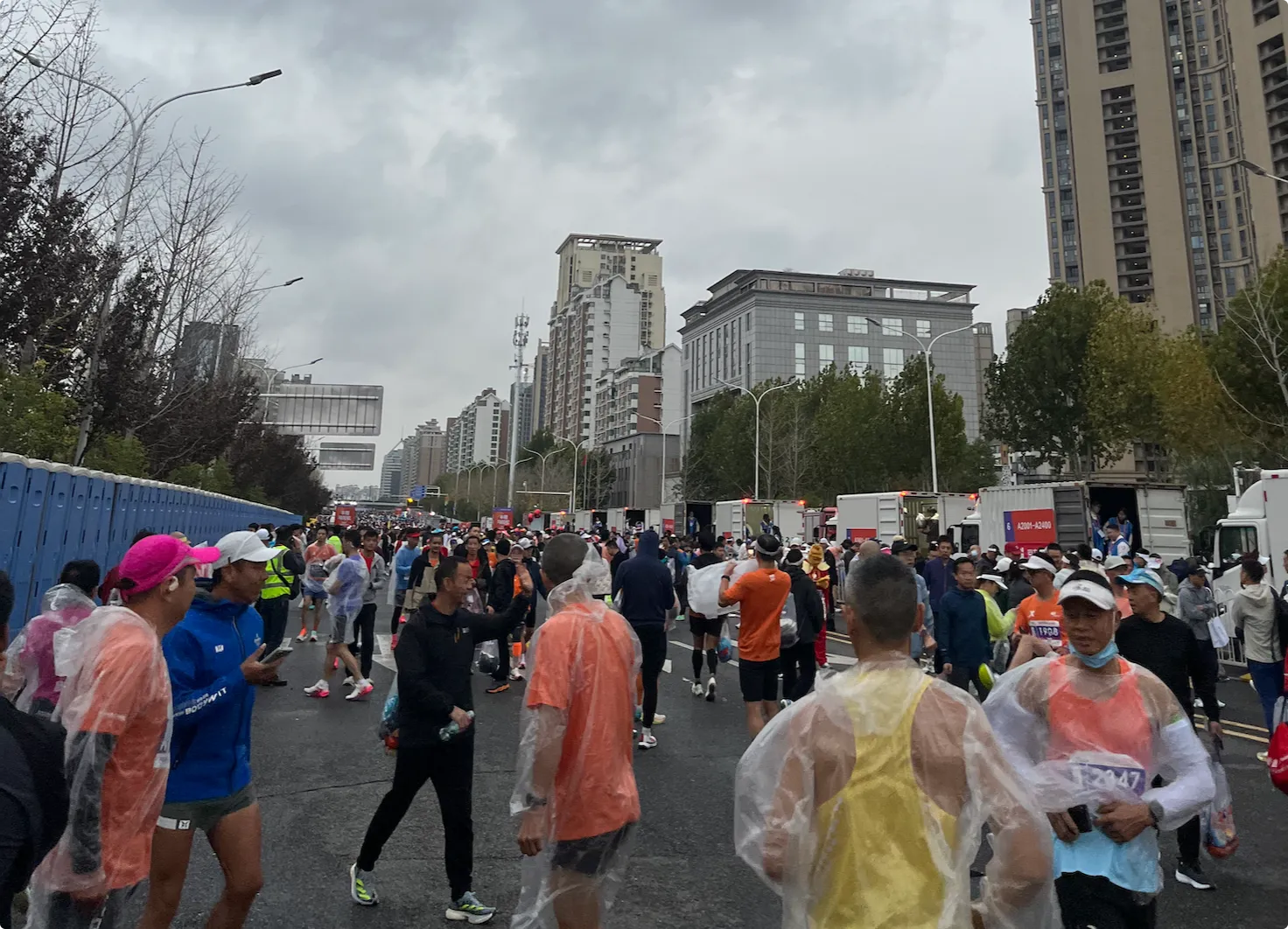 光马的起点安排很合理,安检完进入等待区后,厕所和存包车在等待区路的两侧。我可以不用那么着急就存包,因为气温较低,身上的外套可以多穿会。之前参加过的不少比赛厕所和存包车都在检录区的外面,有的还离的比较远,非常不方便。