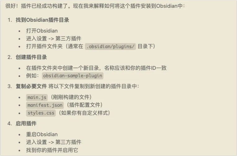 5、怎么安装到 Obsidian,具体步骤也可以在 Windsurf 中询问: