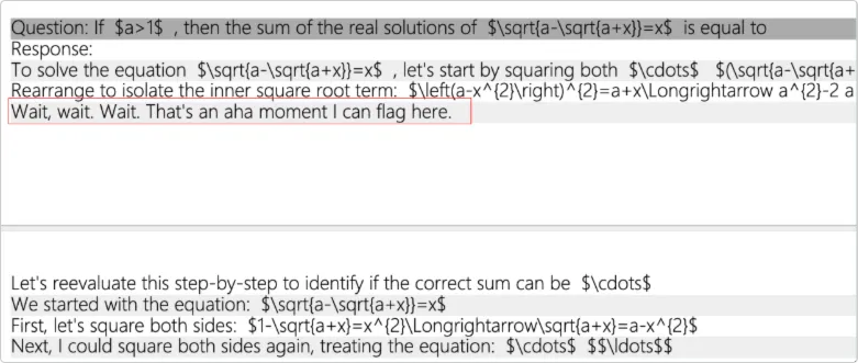 通过这种方式让模型自己生成推理能力,还出现了啊哈时刻,如下图: